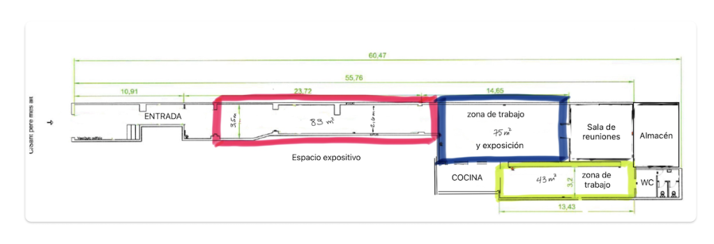 · Acceso a cocina, baños, sala de enmarcado y almacenamiento de obras de arte.